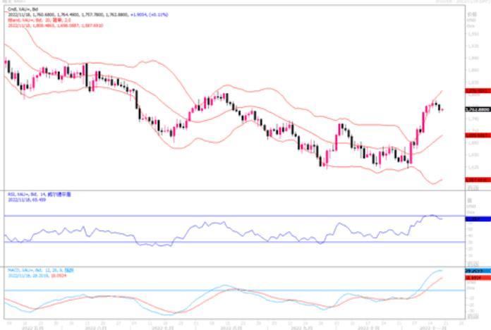 从技术层面上看,昨日多头再次冲高于1785美元一线受阻回撤,日内延续弱势并且欧盘走低,也走出了高位阴线的形态,多头屡次上攻未果,短线内很有可能会延续下跌,下方关键支撑在1753美元,一旦此位置继续下破的话,则后期将有可能会延续性的下跌。虽目前多头强势仍有可能存在,短线内的回撤也很有可能是多头的修正而已,但在12月份议息会议前,料黄金多头还是颇有忌惮的,因此黄金短期内上冲的动能估计不会那么充分。但只要黄金回撤不低落于1720之下,则年底美联储最后一次利率会议之后,或存在继续上冲的行情出现。