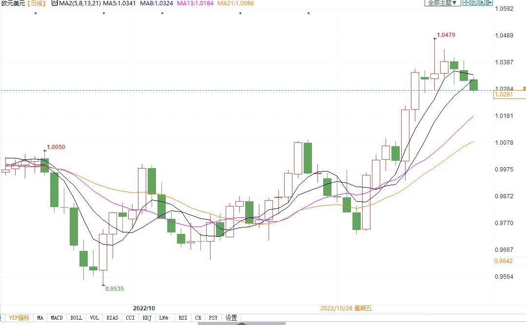 北京时间11月21日14:00,欧元兑美元报1.0279/80