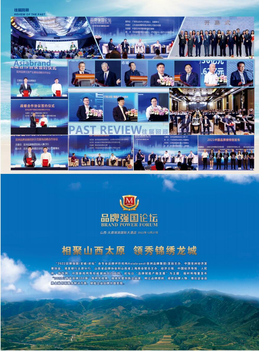 相聚山西太原,领秀锦绣龙城。由专业品牌机构Asiabrand发起主办,中国亚洲经济发展协会、浦发银行太原分行、山西省品牌协会和山西省上海商会联合主办的“2022品牌强国(龙城)论坛暨山西省品牌100强发布会”将于12月27日在太原举行!