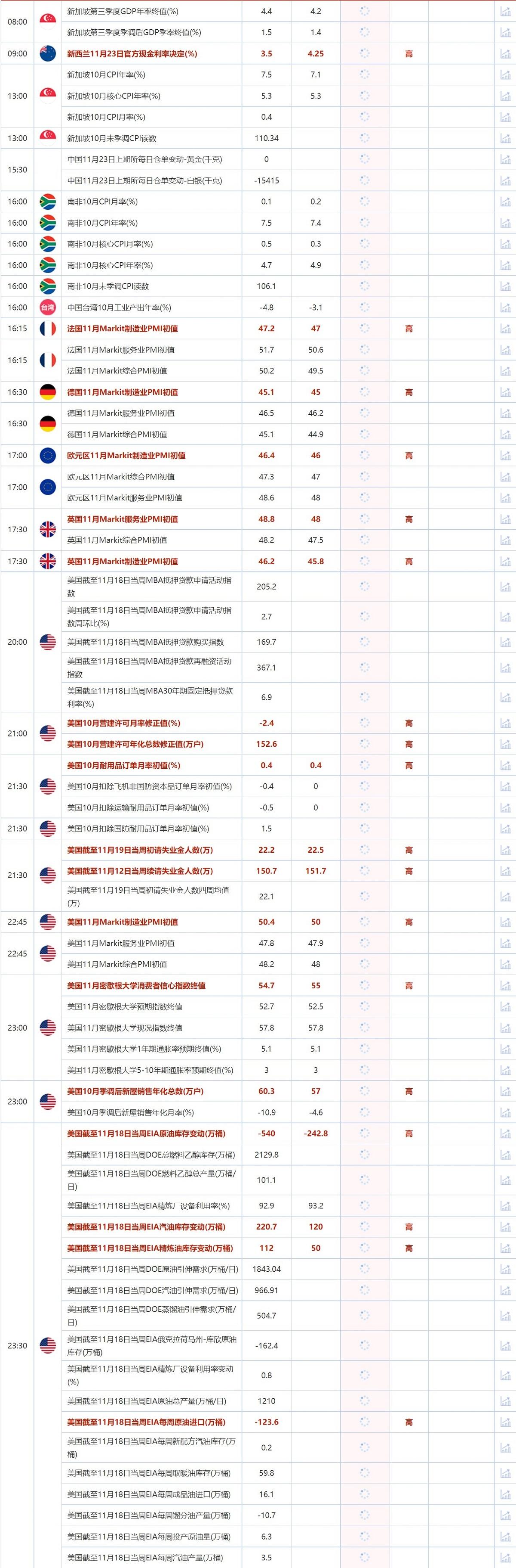 后续及时更新的财历数据请关注:【汇通网11月23日财经日历】