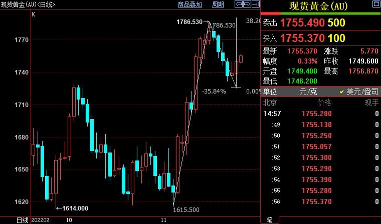 现货黄金上看1766美元
