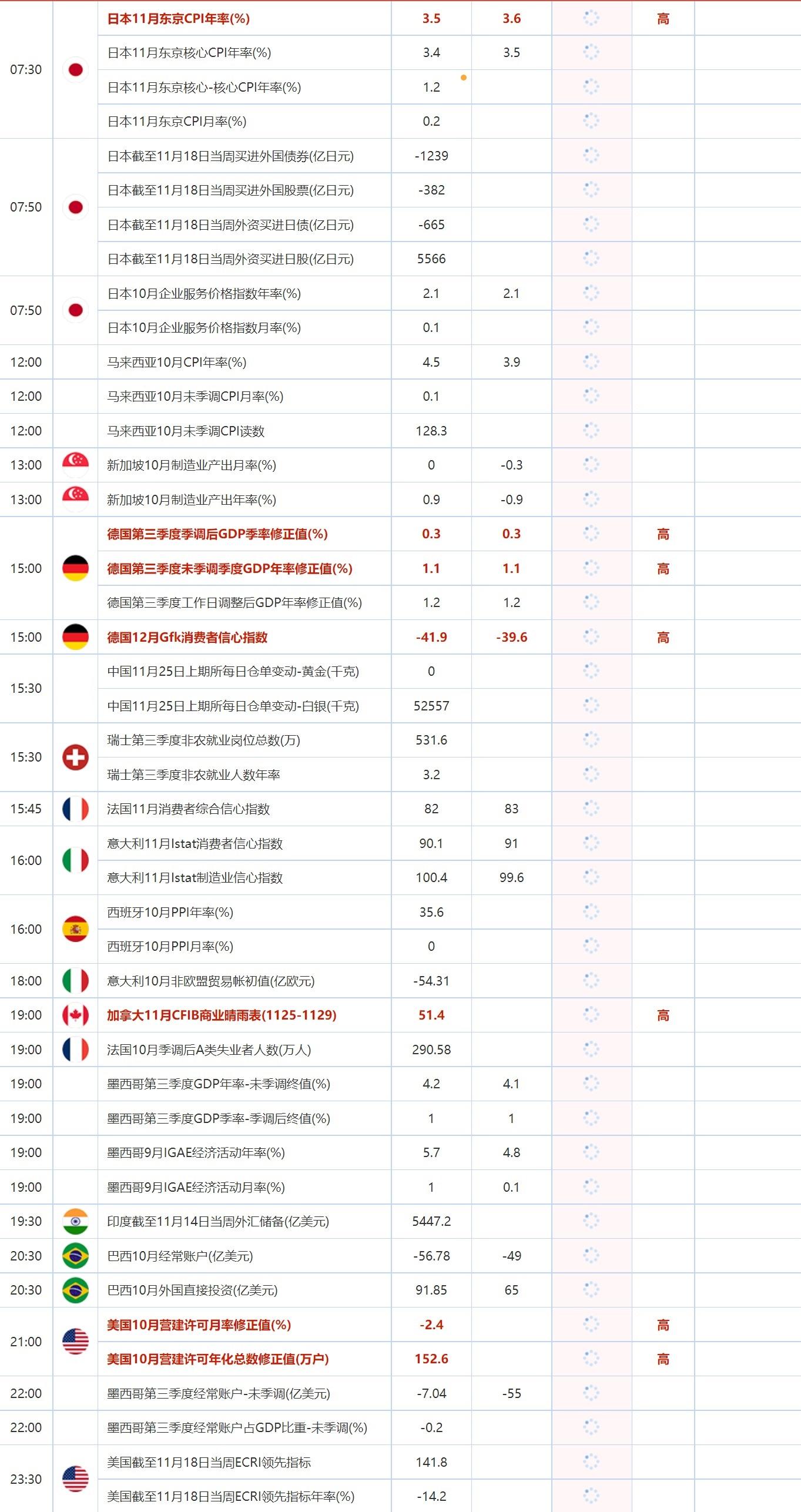 后续及时更新的财历数据请关注:【汇通网11月25日财经日历】