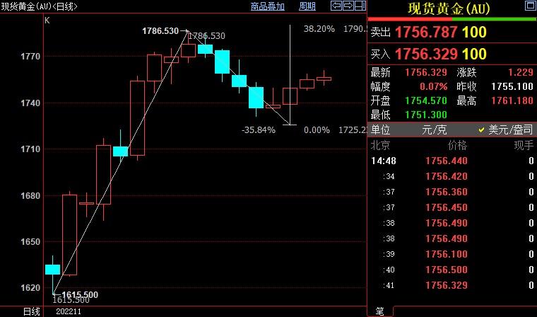 截止发稿,现货黄金上浮0.18%至1752.71美元/盎司;美元指数下跌0.90%至106.037。
