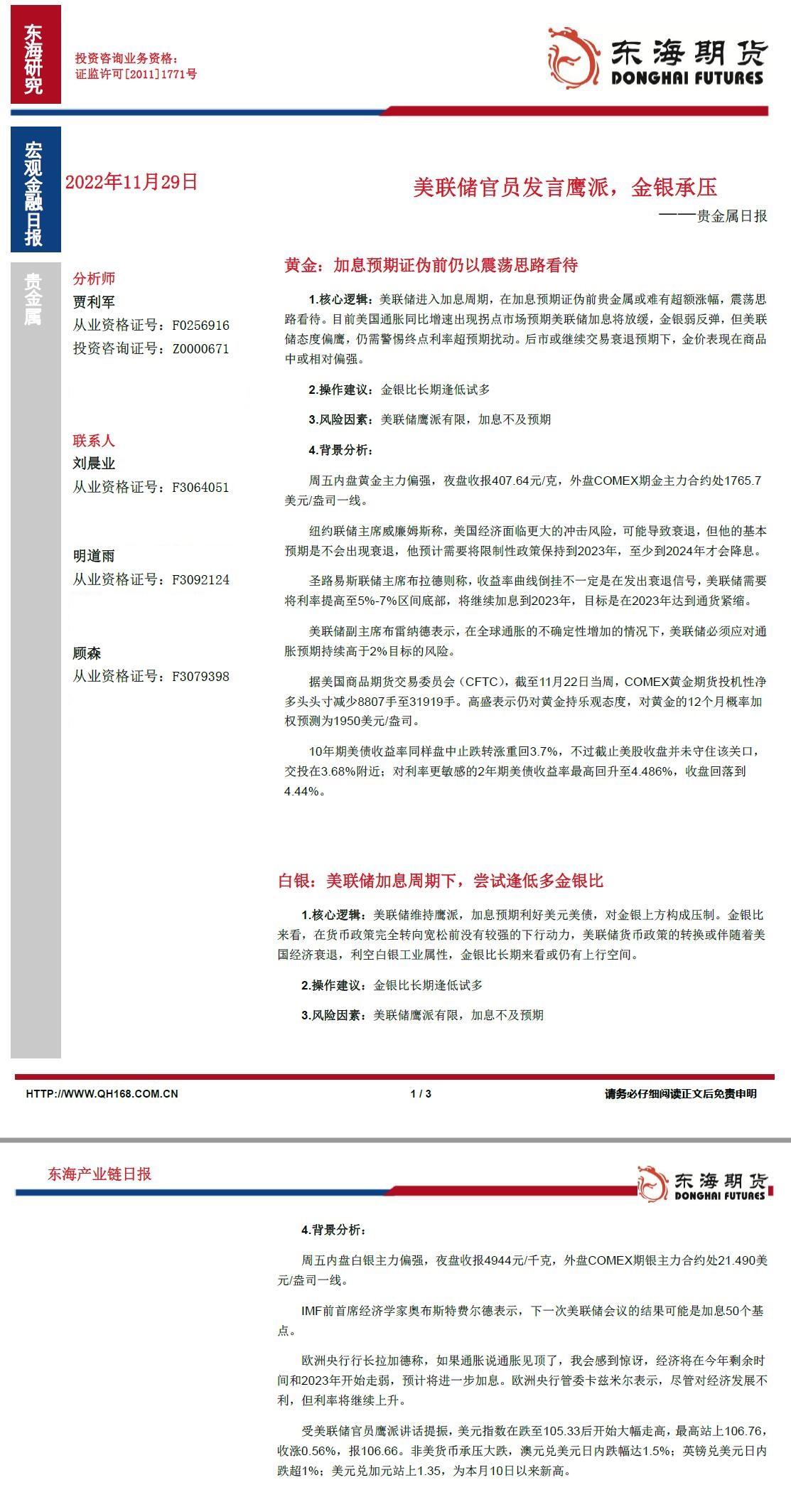 白银核心逻辑:美联储维持鹰派,加息预期利好美元美债,对金银上方构成压制。金银比来看,在货币政策完全转向宽松前没有较强的下行动力,美联储货币政策的转换或伴随着美国经济衰退,利空白银工业属性,金银比长期来看或仍有上行空间。
