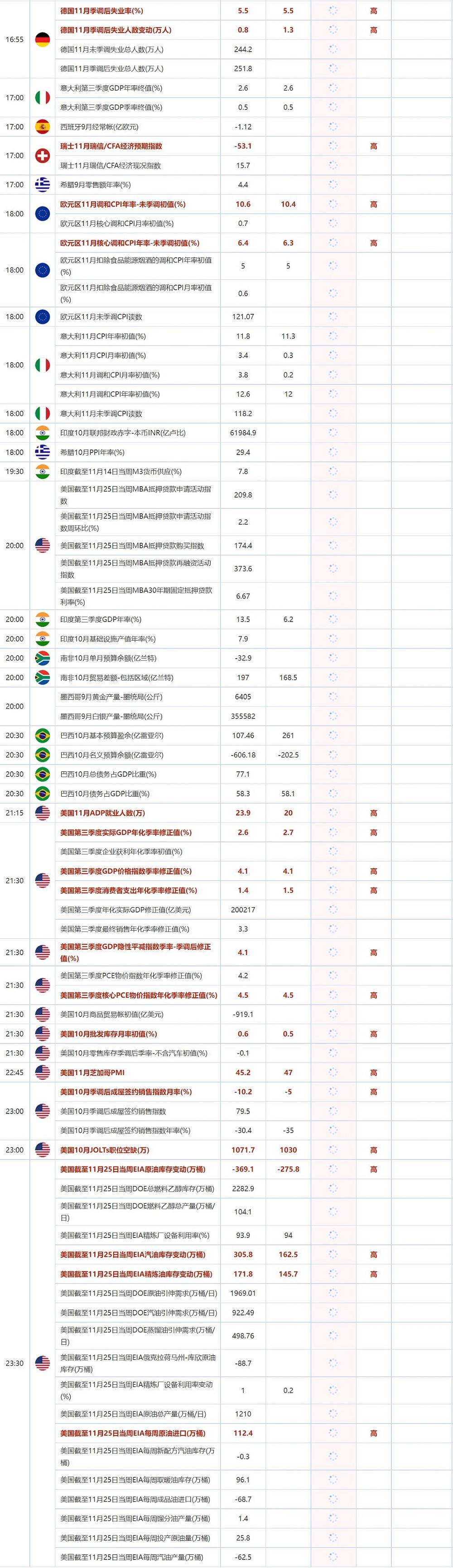 后续及时更新的财历数据请关注:【汇通网11月30日财经日历】
