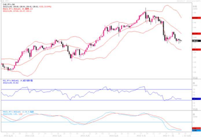 周二(11月29日),美元兑日元继续在近期的低位区域呈窄幅整理走势状况。周一,据野村证券的报告指出,日本九家主要寿险公司2022年上半年的业绩显示,随着海外市场利率上升超过预期、日元贬值,上述九家寿险公司加大了外国债券的抛售力度,外国债券净卖出速度创有史以来最高纪录,约5.5万亿日元(约合390亿美元),财务结果显示海外资产敞口显著下降。至于出现的现金流是否充分运用于对冲汇率风险,从而起到对日元的一些支持,有待观察。日图收录带下影线阴烛,显示在在138.00一线多空存在拉锯,但仍缺乏上行动能。4小时图在前期低点137.66附近跌势有所放缓,多空拉锯。小时图V型反转,但反弹动能有限。近期美元兑日元仍会继续在138.00-140之间进行拉锯式的走势为主。