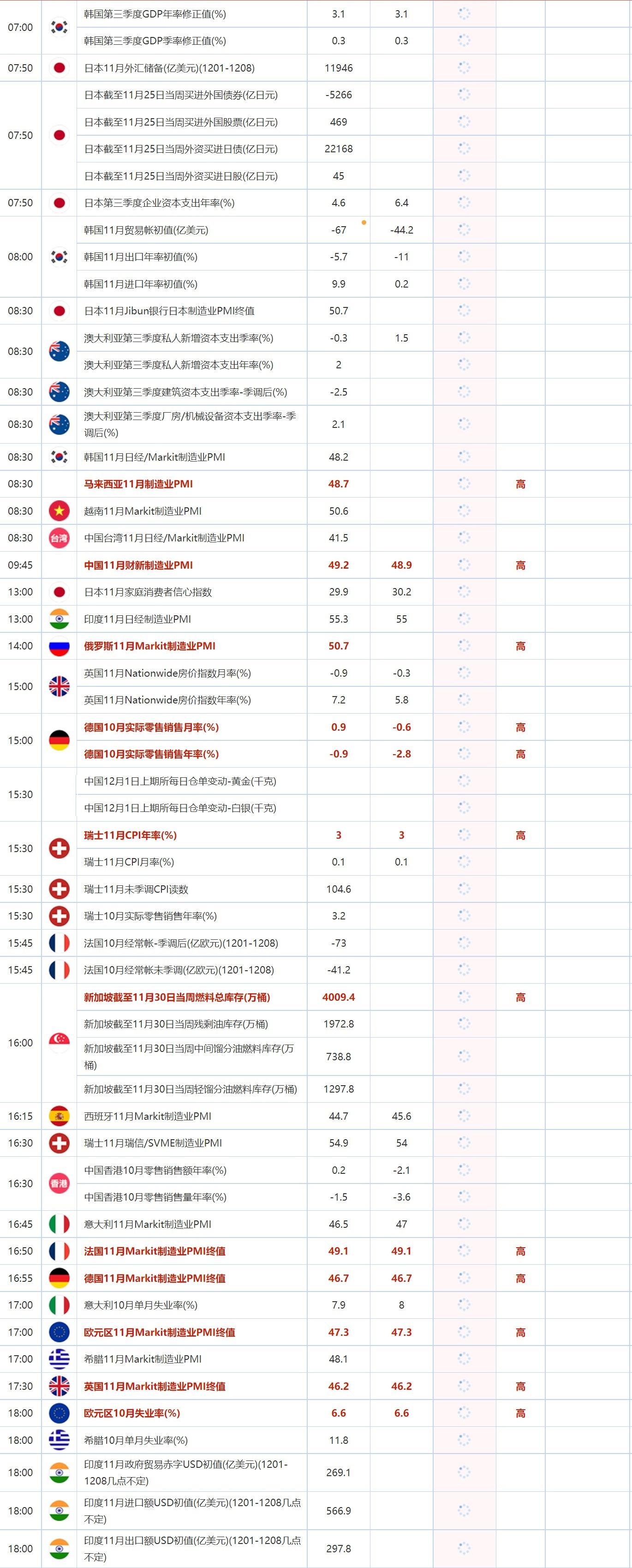 后续及时更新的财历数据请关注:【汇通网12月1日财经日历】