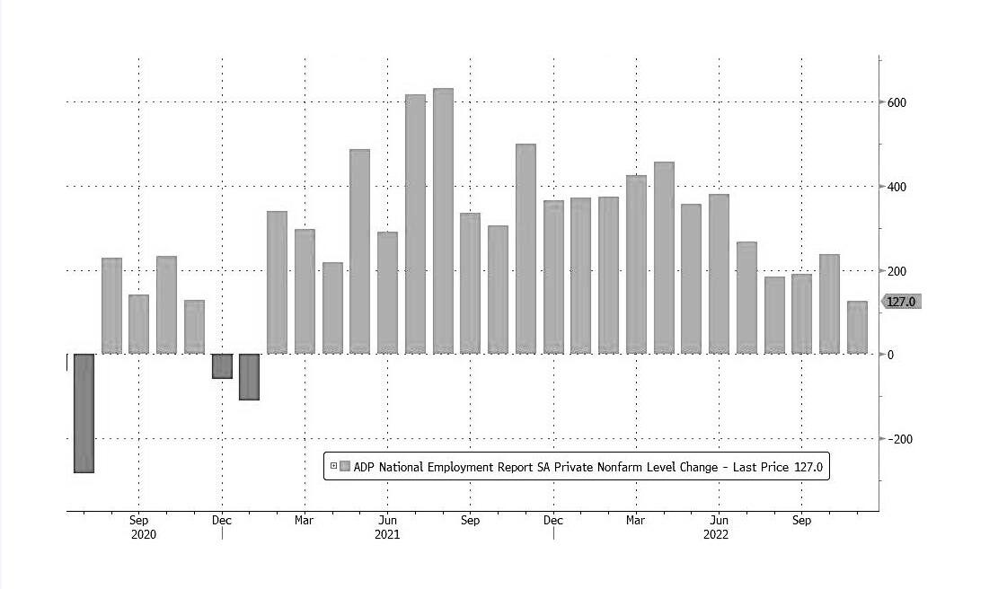 美国11月份私人部门招聘大幅放缓,或表明美国劳动力市场正在进一步降温。但这却是投资者所乐于见到的情况,因此,不及预期的数据推动了美股期指的走高。