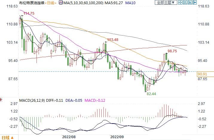北京时间10月24日14:30, 布伦特原油连续 报 90.91美元/桶