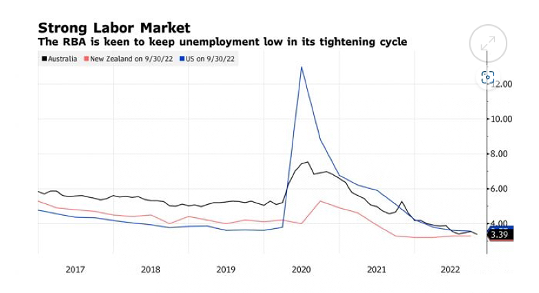 新西兰的失业率也很低,为3.3%,但由于经济衰退的预测,新西兰联储预计失业率将大幅上升,到2023年底将达到4.8%。