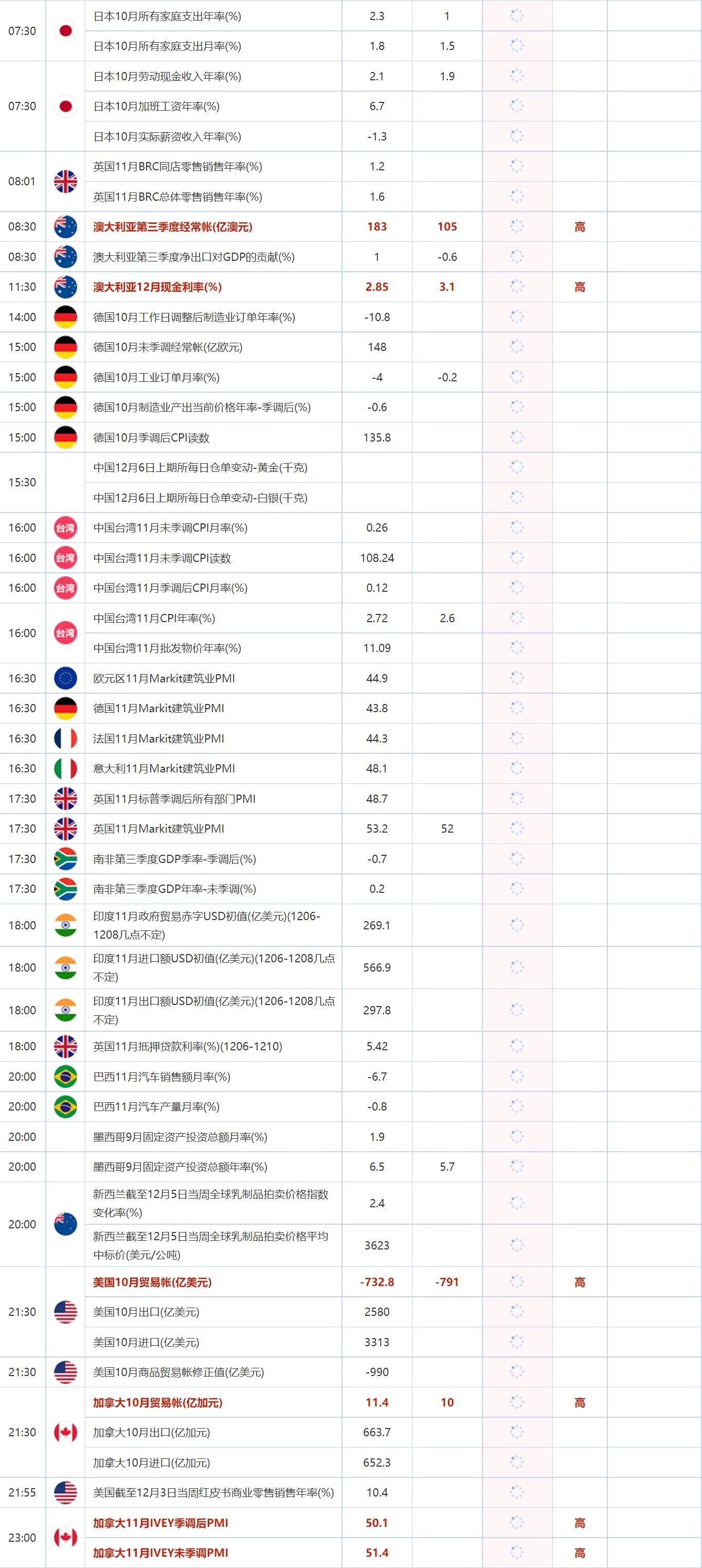 后续及时更新的财历数据请关注:【汇通网12月6日财经日历】