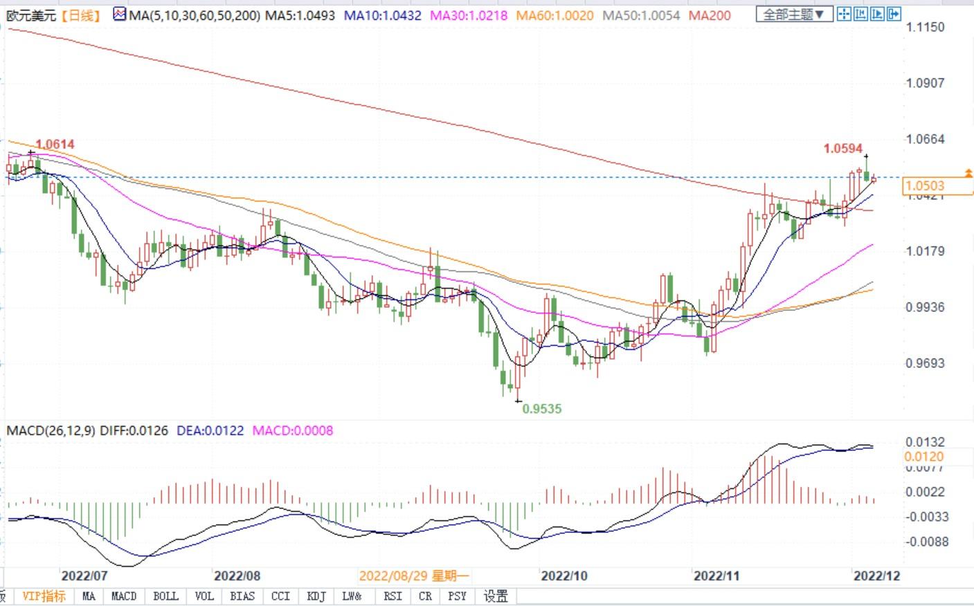 北京时间12月6日18:35,欧元兑美元报1.0501/02