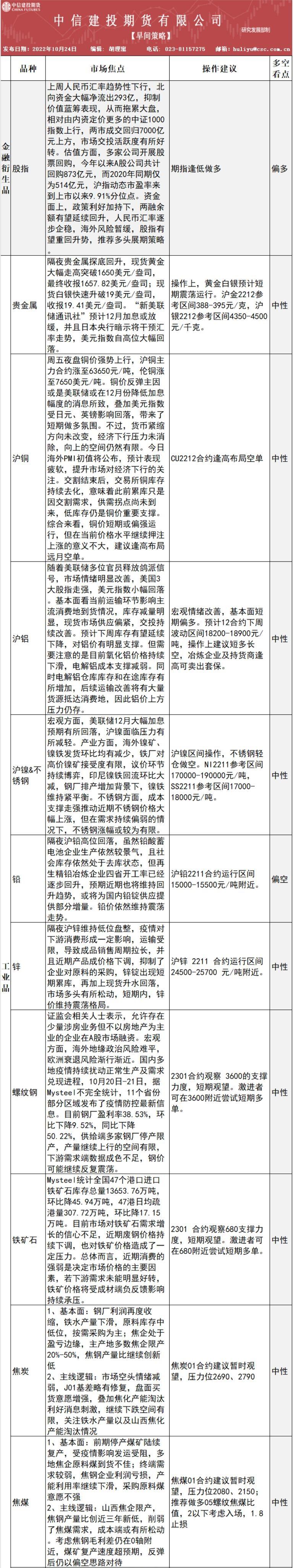 更新: 24 10月 宏观方面,美联储12月大幅加息 预期有所回落,沪镍面临压力有 所减轻。产业方面,海外镍矿、 镍铁发货环比均有减少,铁厂对 高价镍矿接受度有限,议价环节 持续博弈,印尼镍铁回流环比大 减,钢厂排产增加背景下,镍铁 维持紧平衡。不锈钢方面,成本 支撑走强推动近期不锈钢价格大 幅上涨,但在需求持续偏弱的情 况下,不锈钢涨幅或较为有限。 中信建投期货公司授权文本由“专注期货开户交易及专业行情分析资讯网站”:【一期货 www.1qh.cn】转发 标题:中信建投期货10月24日早间策略 地址:https://www.jiasmai.com/article/90.html ← 一张图:交易品种枢纽点+多空占比一览(2022/10/24周一) → 苏纳克料成英国新首相!英国政局趋稳,投行为何仍看跌英镑