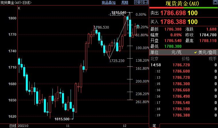 北京时间15:01,现货黄金上浮0.02%至1786.28美元/盎司;COMEX期金主力合约上浮0.01%至1798.2美元/盎司;美元指数下跌0.05%至105.153。